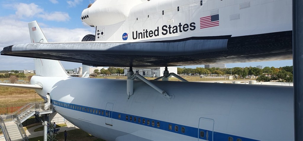 Woensdag, 12 november. Space Center Houston. We laten ons verwonderen over de geschiedenis en toekomst van de ruimtevaart. Blikvanger bij binnenkomst is wel de shuttle carrier aircraft en de eigenlijke shuttle, de Independent.