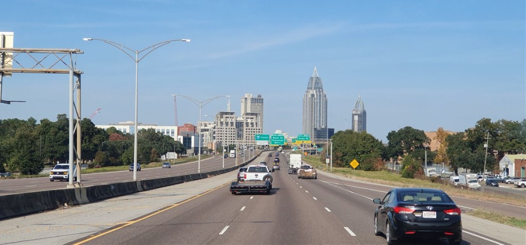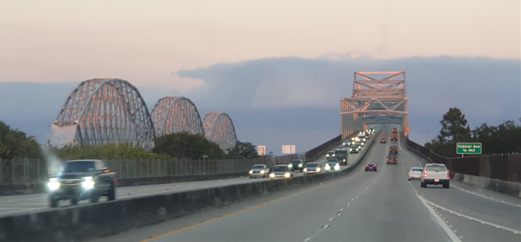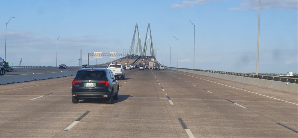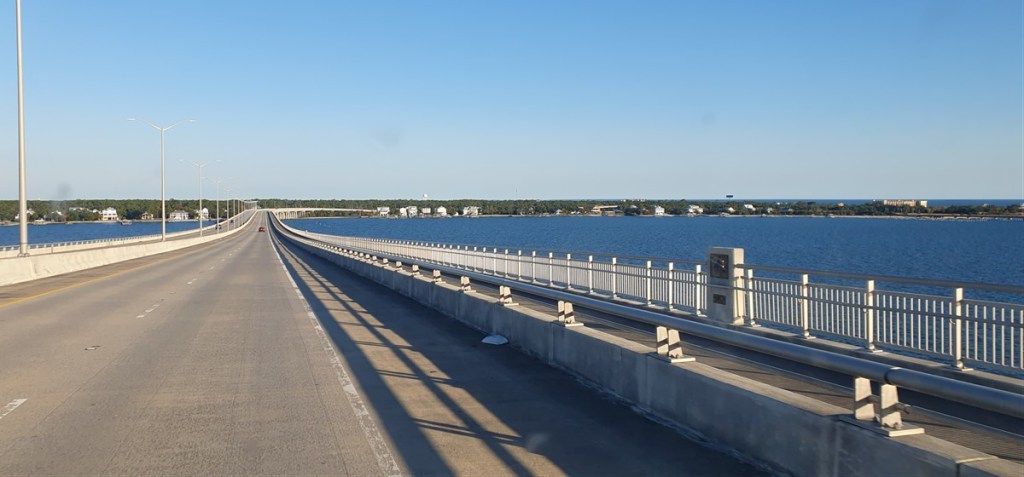 We rijden Houston uit over de I-10 richting New Orleans. We overnachten in een park dicht bij de snelweg. Veel herrie dus! Volgende dag een lange dag op de I-10. Weinig aan zo’n dag op de snelweg, maar soms moet het even om een afstand te overbruggen. Onderweg bruggen…..