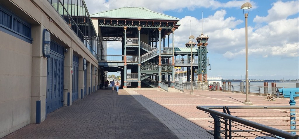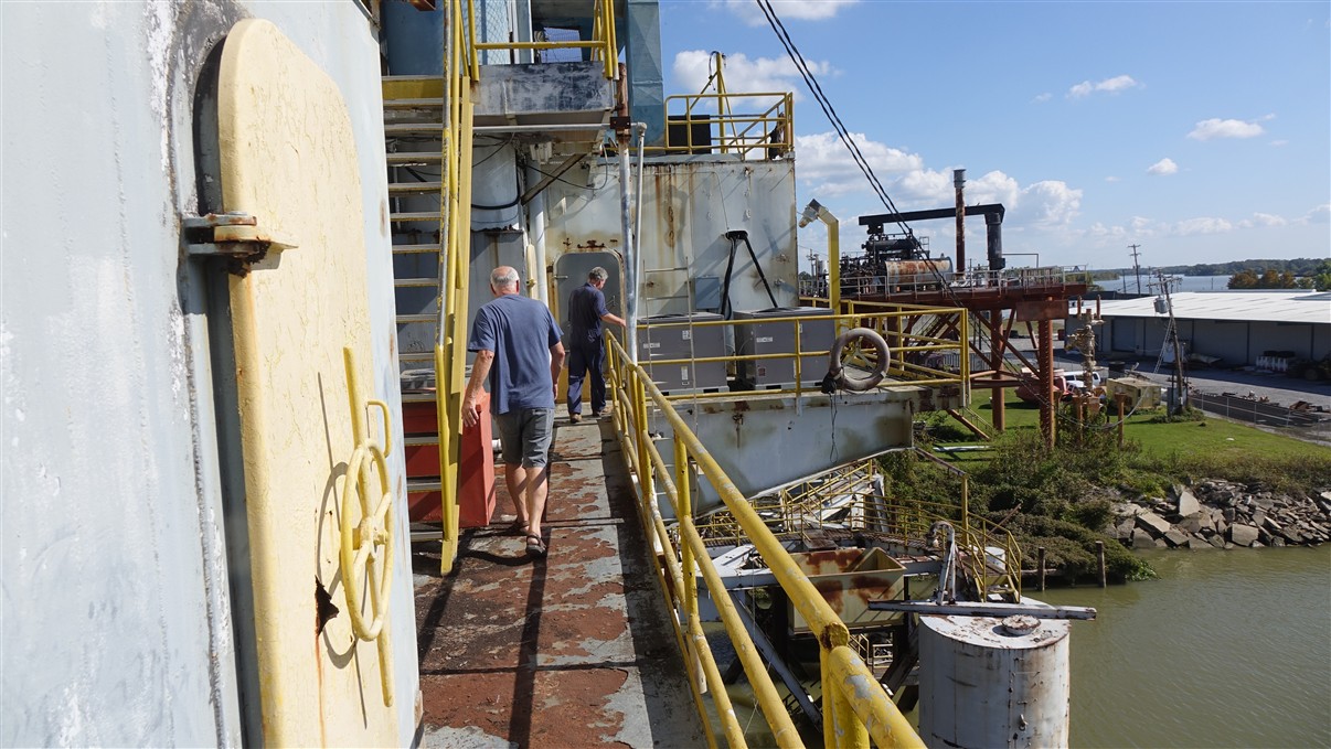 We stappen uit bij de Mississippi. Kijken rond bij de radarboten, zoals die vroeger op de rivier voeren.