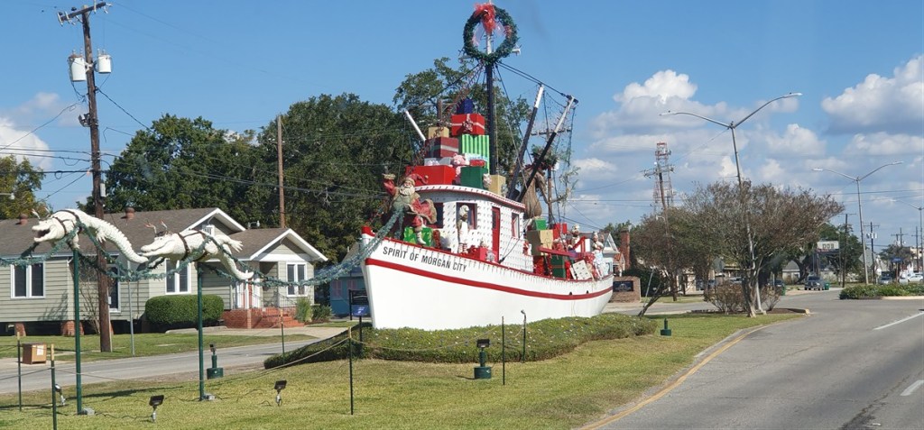 We rijden Louisiana in en slaan af naar Morgan City. Daar is het Rig Museum. Een olieplatform dat nog in authentieke staat is en bezichtigd kan worden. We overnachten op een camping aan het meer. Hier zien we de eerste moeras cipressen en eiken behangen met Spaans Mos.