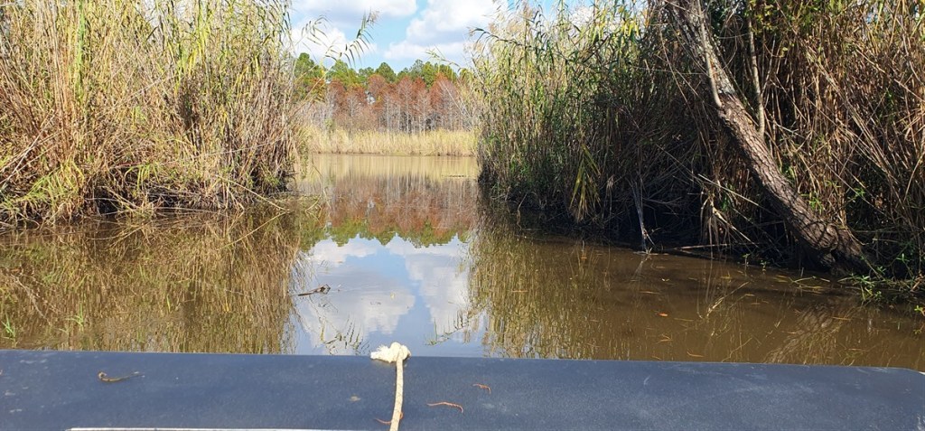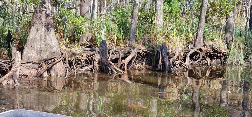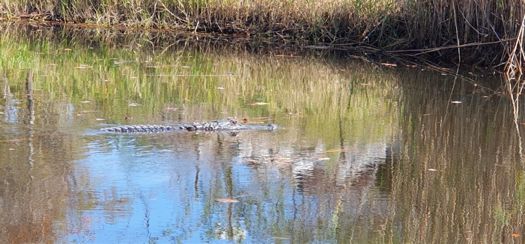 Naast opvang is het nu vooral een toeristische trekpleister met airboat moeras tours. We praten uitgebreid met Dave, onze gids. Tijdens de overstromingen van orkaan Katrina zijn 250 alligators over de hekken verdwenen in de omliggende moerassen. Er zijn slechts 20 teruggekomen! Nu zijn er in de opvang ca. 90 dieren. We maken een mooie tocht door het moeras. Zien 3 alligators, wat schildpadden en witte vogels. Maar wat de tocht spectaculair maakt is wanneer de boot op snelheid door de moerassen spuit. Leuk!!! Beetje nat geworden, maar dik lol!