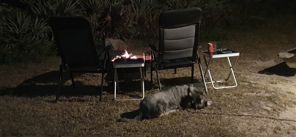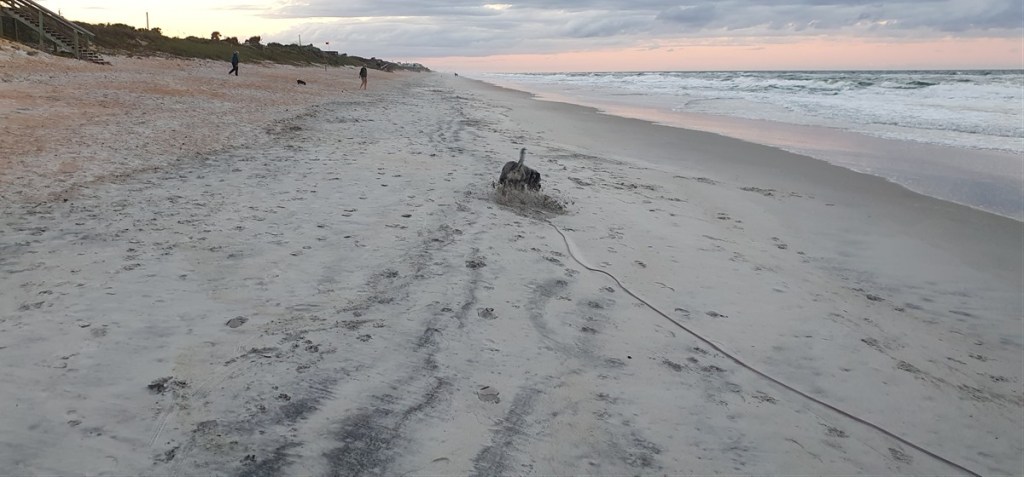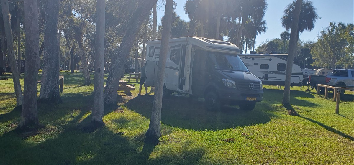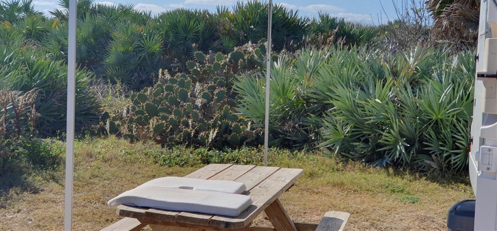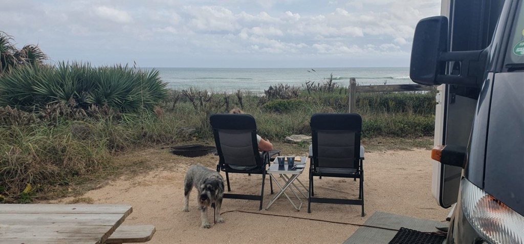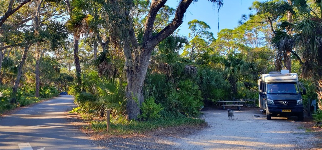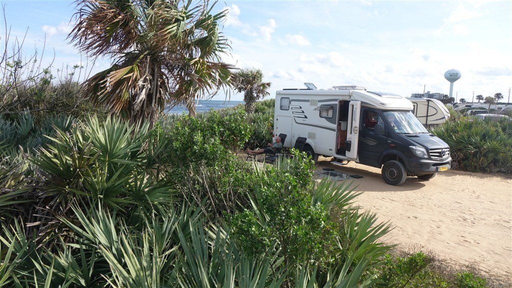 Door naar Gamble Roger Memorial State Park. Hier hebben we voor 2 nachten een plekje aan het strand. Iets verderop is een strand waar Hannes, aan de riem, mag lopen, dus helemaal goed.