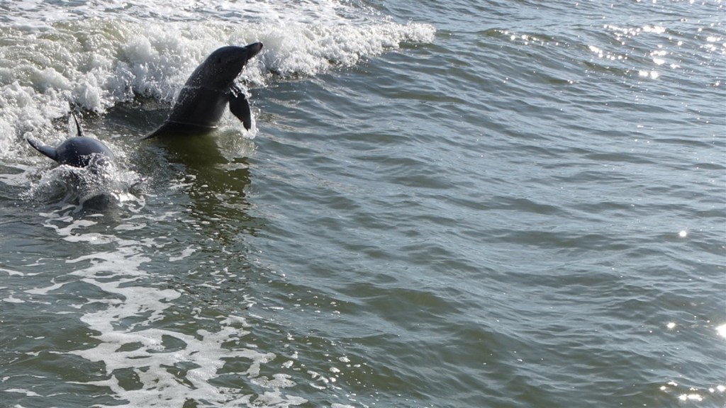 We zien heel veel vogels en…… heel veel dolfijnen.