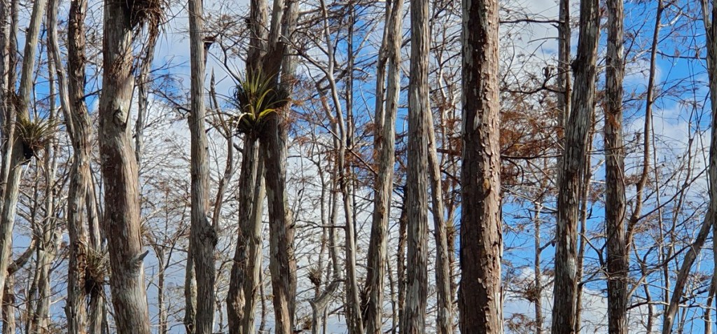 Dinsdag 25 november. Vandaag staat de Scenic Road door het Big Cypress Wildlife gebied op het programma. Wat een fantastische ervaring. Het is een prachtige onverharde weg door de mangroven en cypressen.
