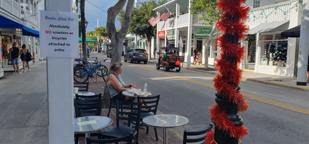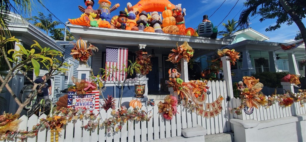 Verder naar Duval str. Opvallend is dat overal al kerstversiering te bewonderen valt, of andere versiering. Komen een huis tegen met de tekst ‘United we stand, Divided we fall’ wel heel typerend voor de huidige tijd!