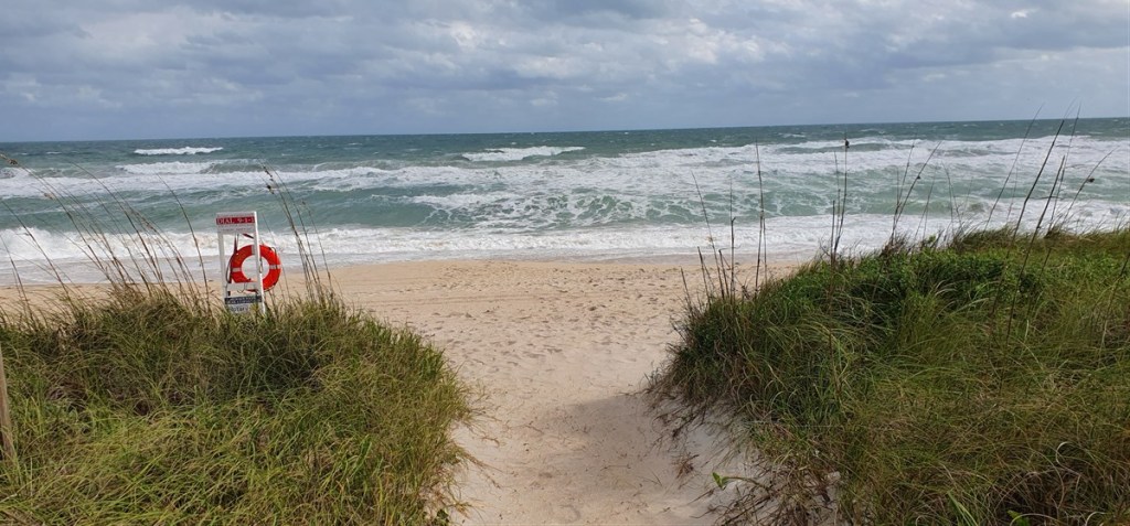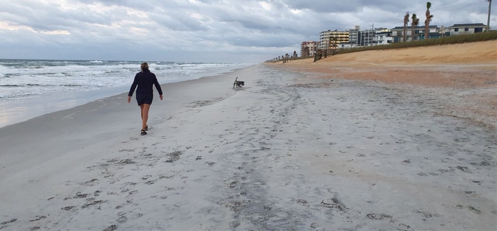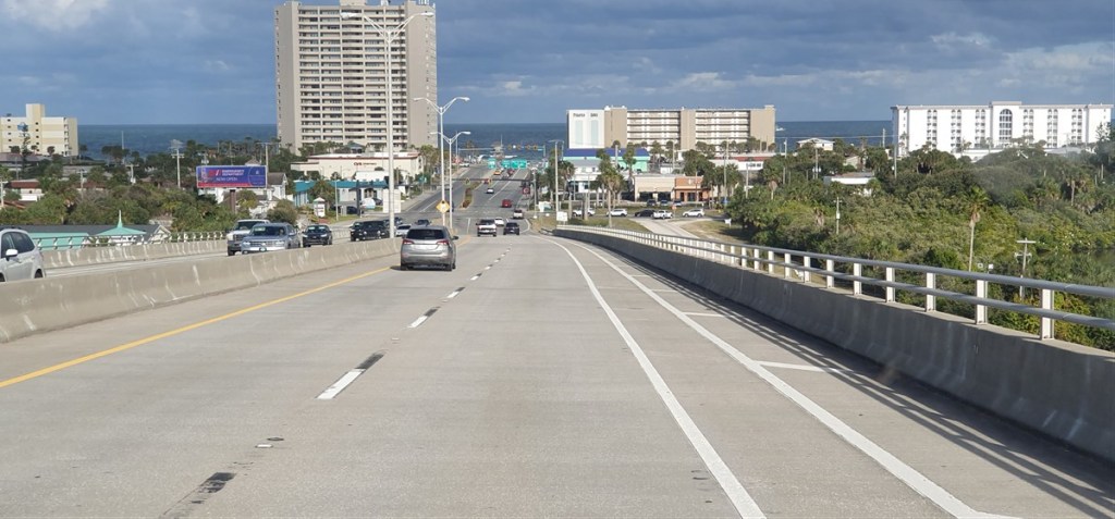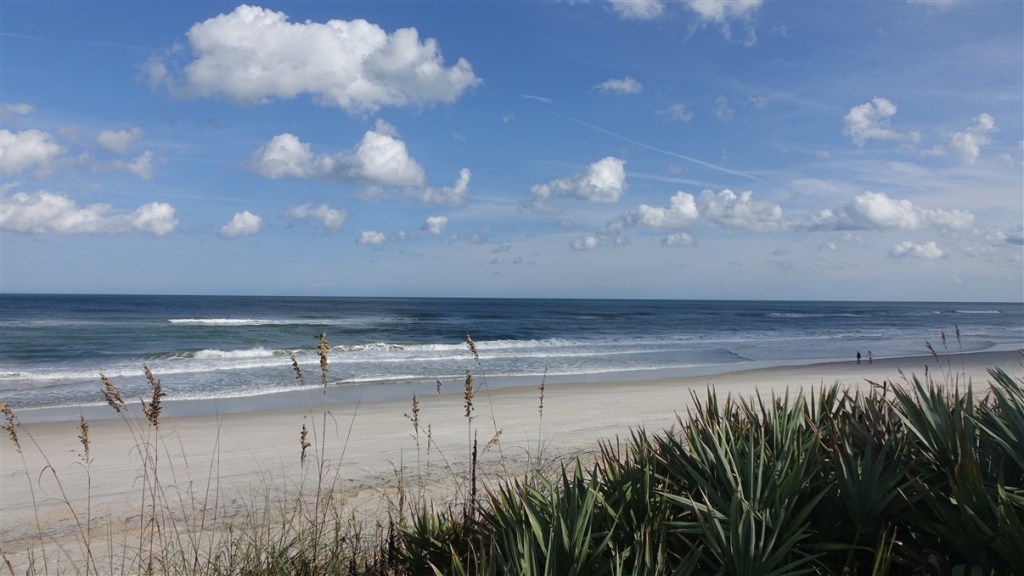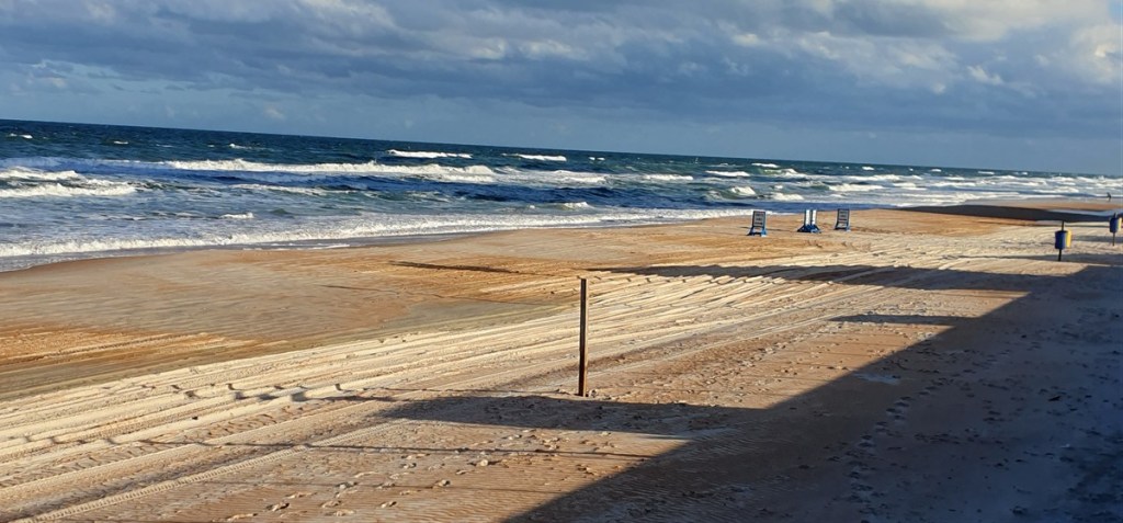 Over de I-95 rijden we naar Daytona Beach. Bekend van strandraces. Je mag hier ook zelf met de auto op het strand. Wij kijken dus…. Waarschijnlijk is er heel veel strand weggeslagen, want er is nog maar een klein strookje over. Gaan wij niet doen. Ons iets te risicovol met onze 4 ton.