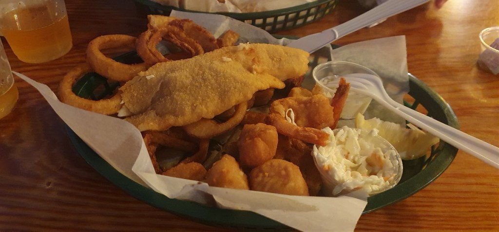 We hebben zelfs een strandtent gevonden met lekker seafood.