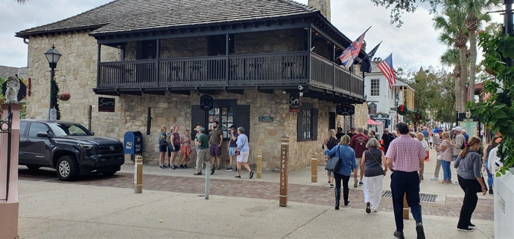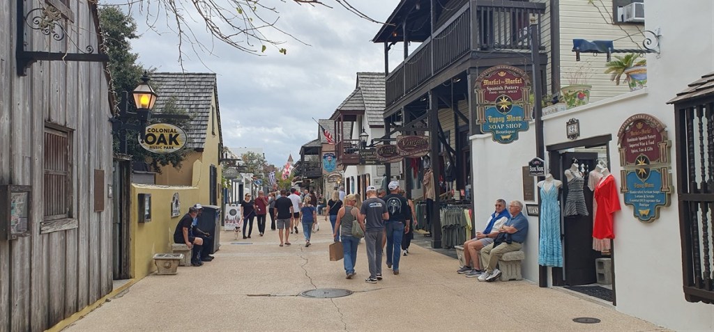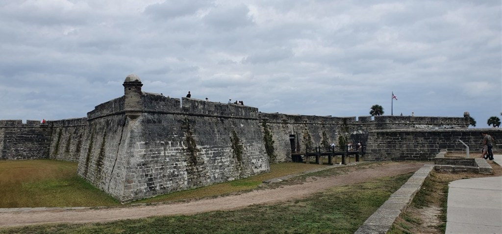 De volgende ochtend zijn we laat op pad. Het is Frans in de rug geschoten en hij komt niet op gang. Rustig aan dus en we wandelen rond in St. Augustine. Gesticht door een Spanjaard in 1565. Brandde in 1702 volledig uit en is herbouwd in de schaduw van Castillo de San Marcos. Een stervorming fort gebouwd van coquina, kalksteen ontstaan uit de combinatie van schelpen en koraal. Dit is het meest intacte fort van Amerika uit de 17de eeuw.
