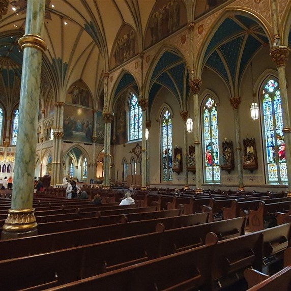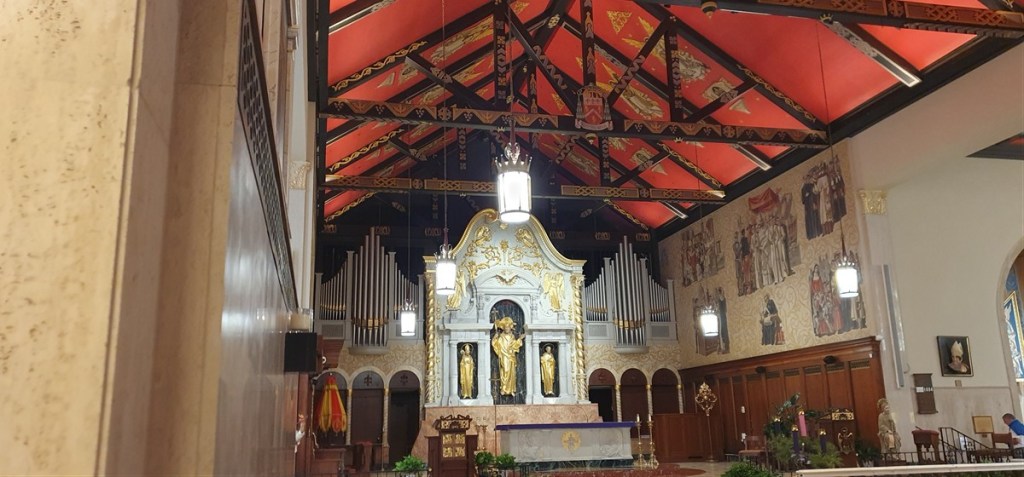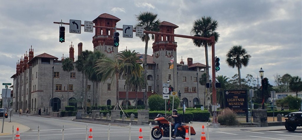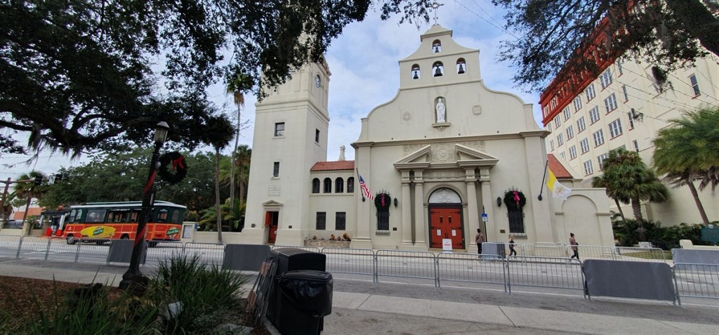 We bezoeken de Basilica Kathedraal aan het Plaza de Constitution. Een groot kruisvormig gebouw met een mooi houten plafond. Aan het plein ook het Flagler College uit 1883 en het Lightner Museum. Beiden van dezelfde architect Flagler.