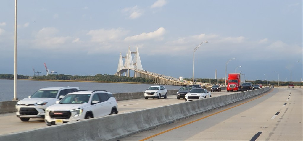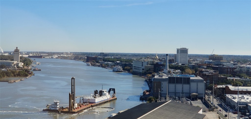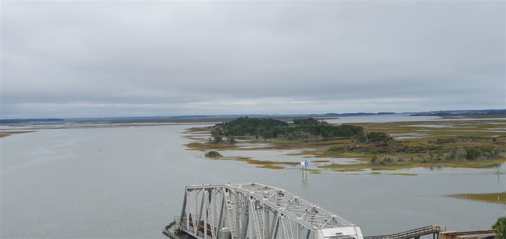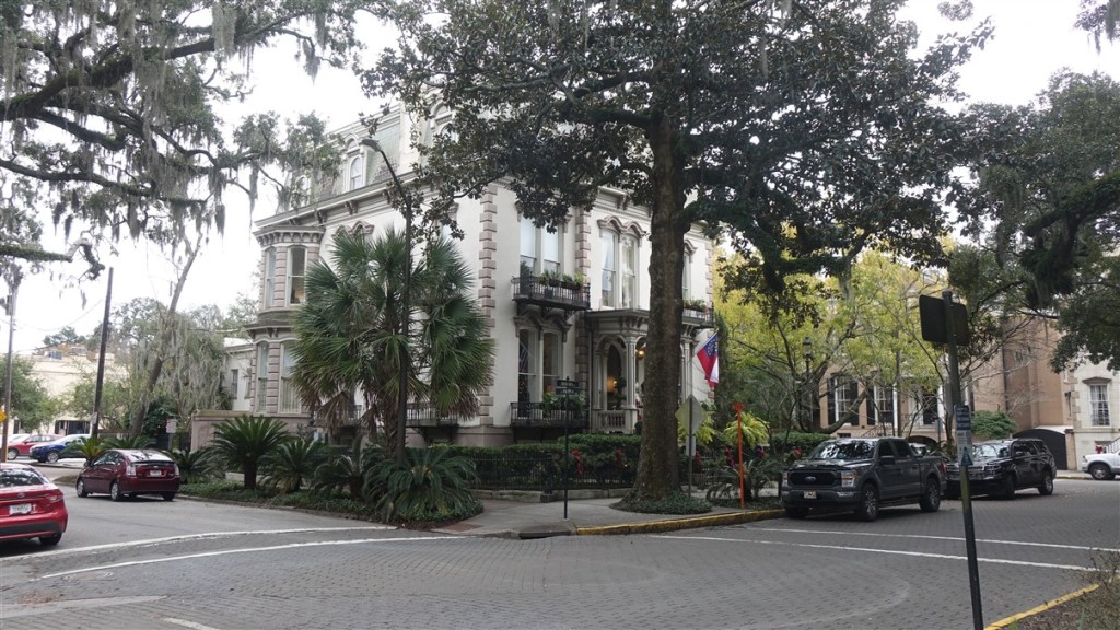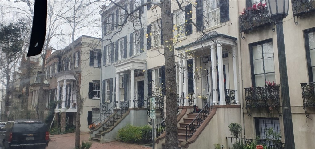 De volgende ochtend is het eindelijk droog maar nog steeds koud. Van korte broek en T-shirt naar winterjas! We rijden over de Interstate 95 naar Savannah. Veel moerasachtig landschap, een echt rivierendelta gebied.