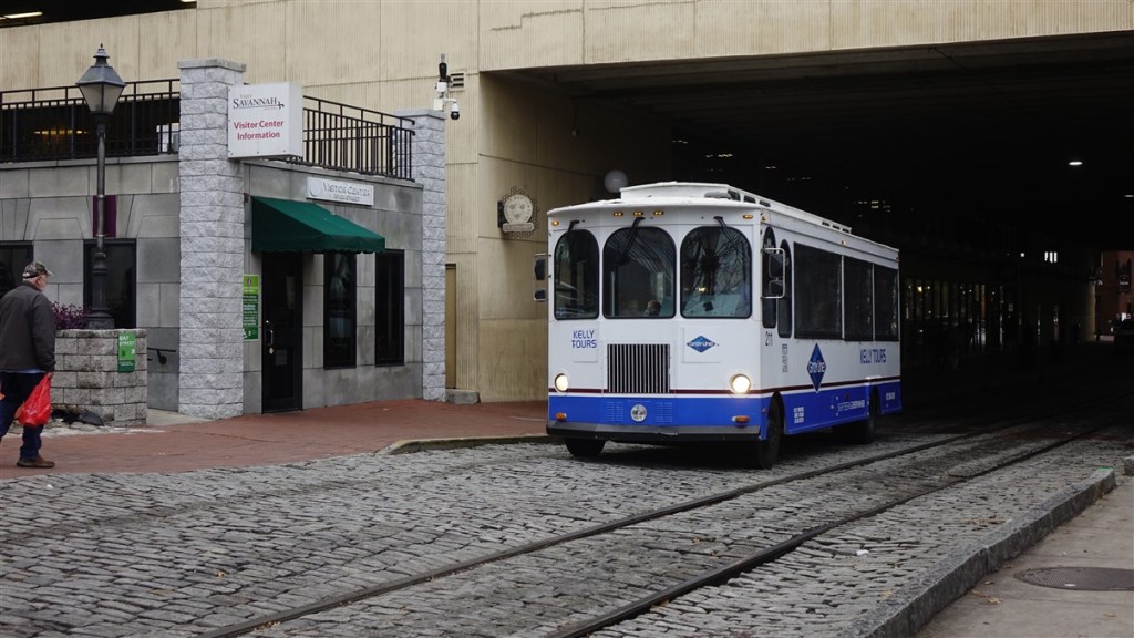 Gelukkig gaat het inmiddels weer wat beter met de rug van Frans. Midalgan doet wonderen! We hebben voor 2 nachten een plekje gereserveerd in Skidaway State Park. Prachtige camping onder de bomen. Nog steeds koud! Dinsdag 9 december rijden we Savannah in. We boeken een rondrit met een trolley. Hannes mag mee!