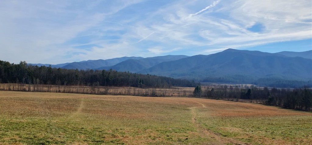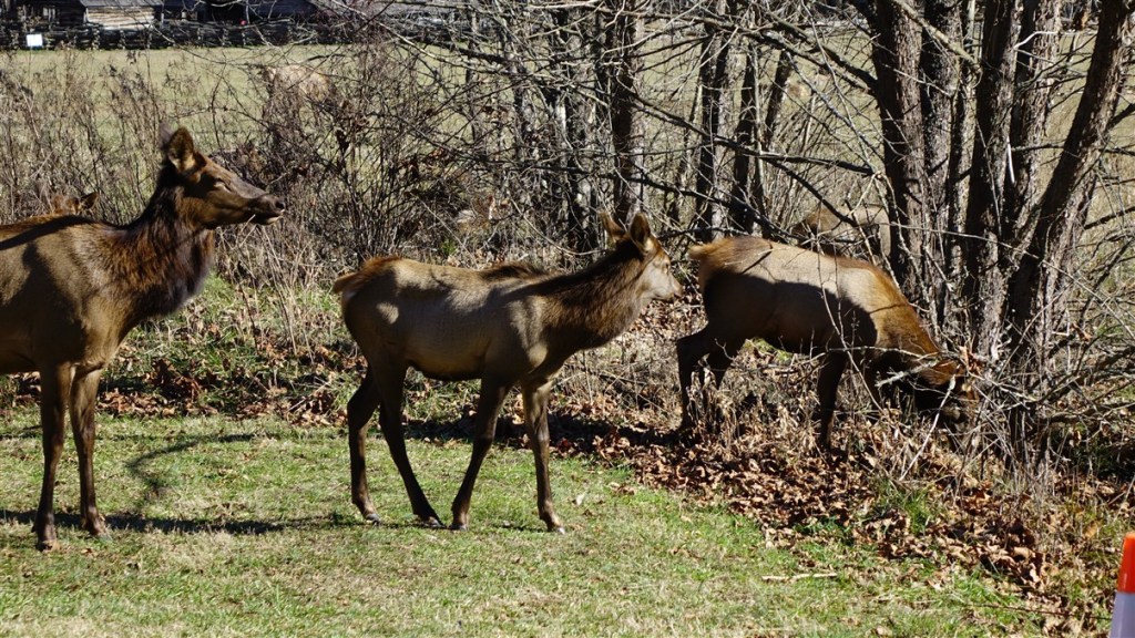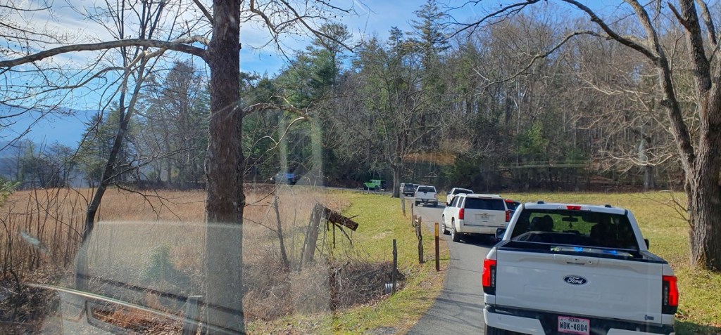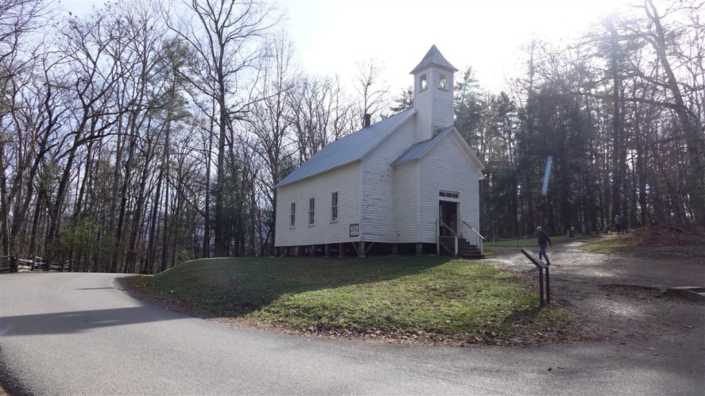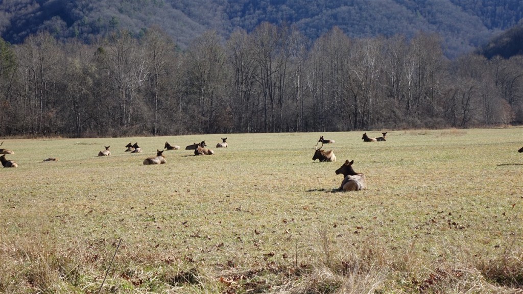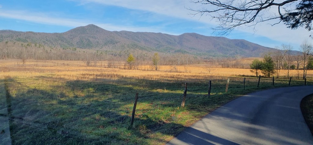 Zaterdag 13 december. We worden wakker van de kalkoenen rond de auto! Het is opnieuw prachtig weer. We rijden de Cades Cove Scenic Route. Een rondje van ca. 20 kilometer. Het is druk! We rijden zowaar in een langzaam rijdende file door een prachtig landschap.