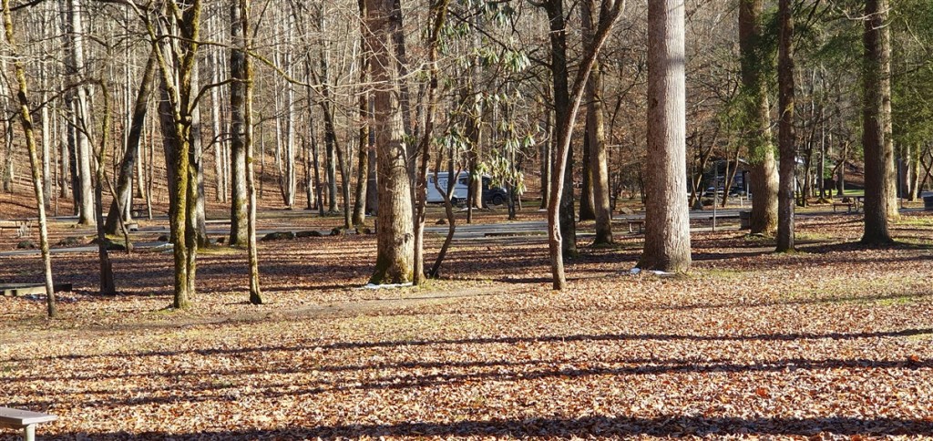 Jammer genoeg krijgen we bij het bezoekerscentrum te horen dat de doorgaande route door het park Hwy 441 gesloten is. IJs en sneeuw! Jammer! Betekent dat we maar zo’n 8 km het park in kunnen naar de Smokemount Campground. Vond het al vreemd vanochtend toen ik reserveerde dat er maar 3 of 4 plekken bezet waren….. Normaal gesproken het drukste National Park van Amerika!