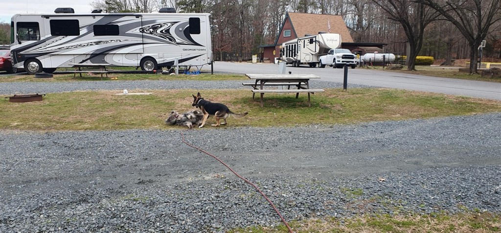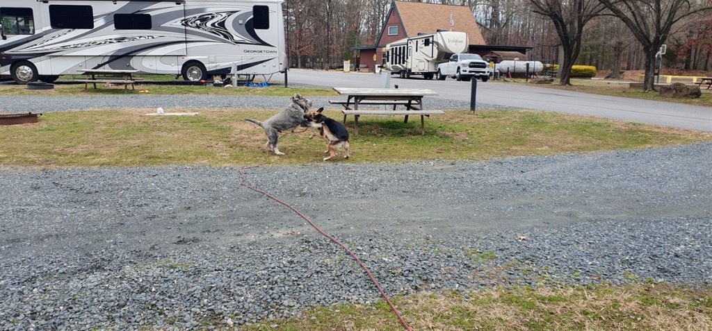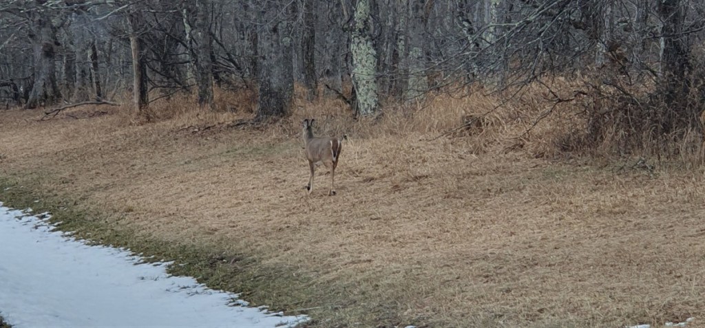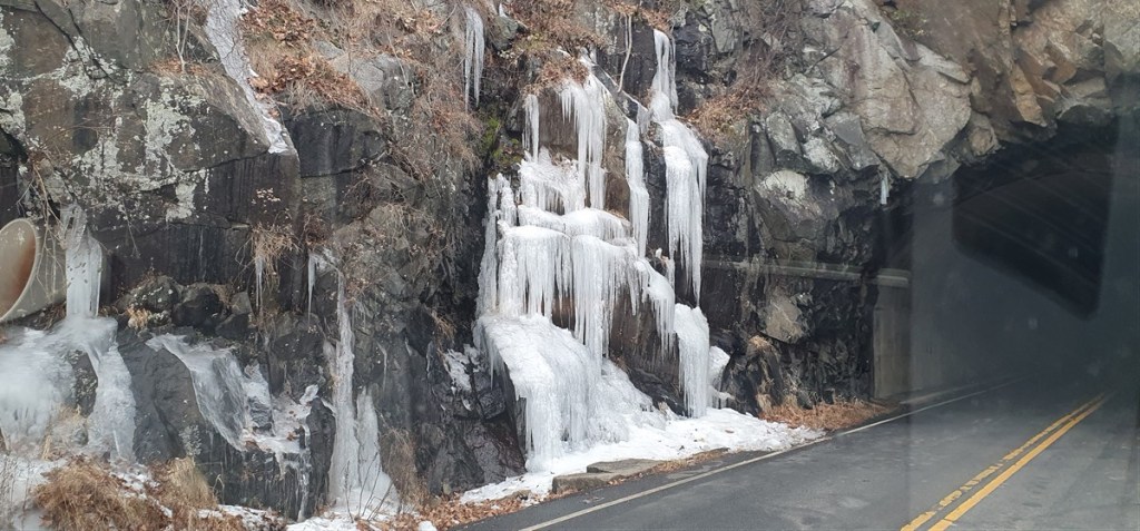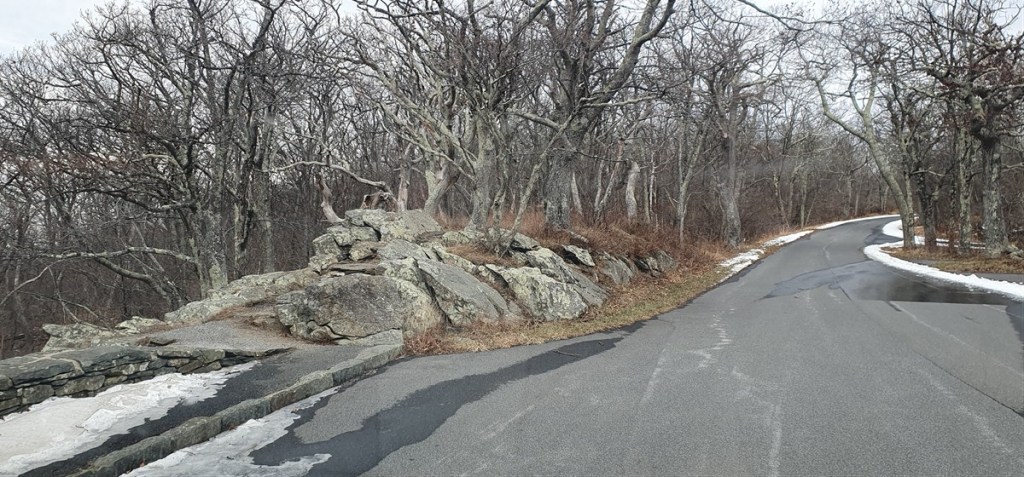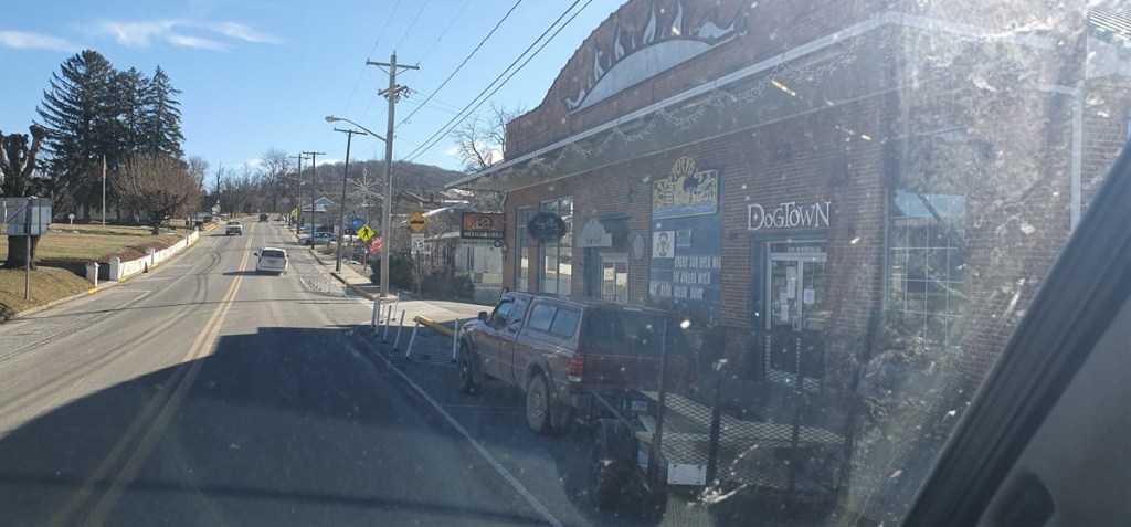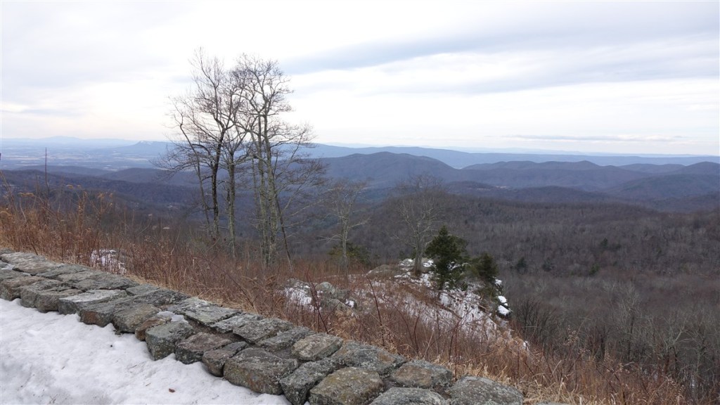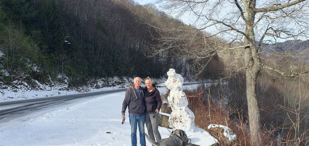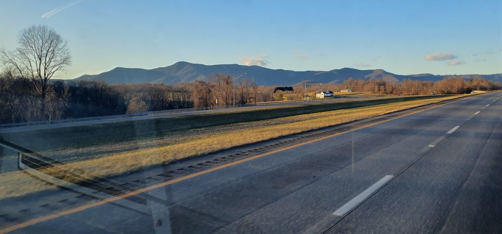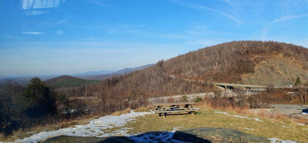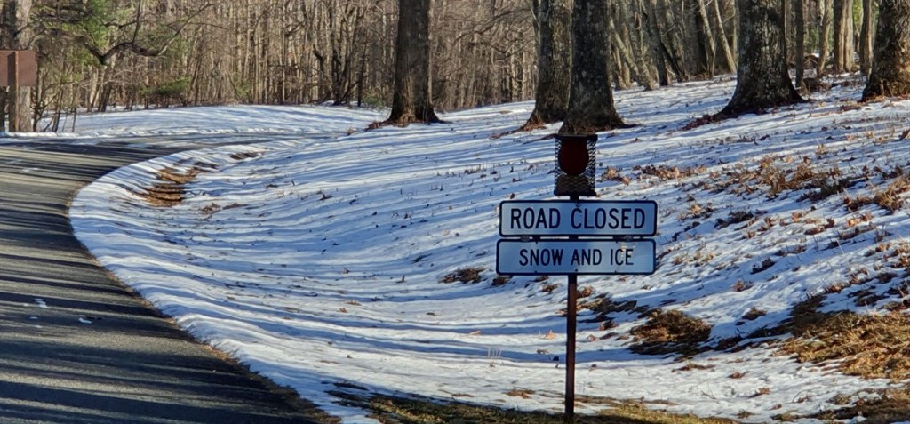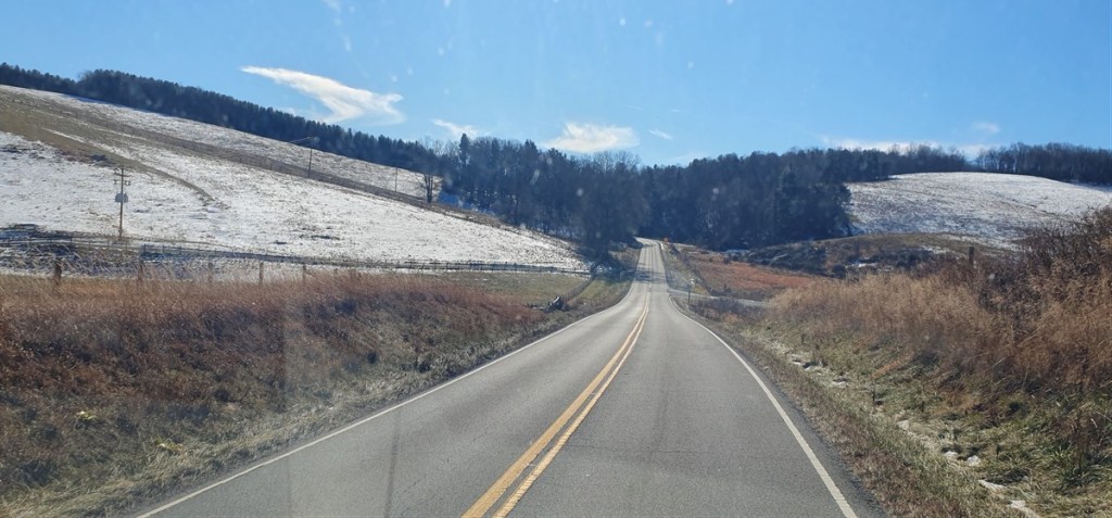 Het is een koude nacht met zo nu en dan wat sneeuwvlokjes. Hannes is niet fit. Hij is fors aan de diarree. Zo erg zelfs dat hij ons ’s nachts wakker maakt omdat hij eruit moet…. Toch eet en drinkt hij goed…. Dat is voor ons in ieder geval geruststellend. Hij stinkt alleen als een grote. Zo nu en dan is het net of we in een giertank rondrijden… Bij het bezoekerscentrum in Asheville hebben ze helaas geen goed nieuws voor ons. De Blue Ridge Parkway is grotendeels afgesloten. Samen proberen we een paar stukjes te vinden die we wel zouden kunnen rijden verder richting Virginia. Eerste stuk dus maar over de snelweg gereden naar Lambsburg. Daar op een parkeerplaats aan de snelweg overnacht. Het is koud! Een ijskoude wind en de gevoelstemperatuur is -17˚C. De kachel heeft er moeite mee, verbruikt een halve gasfles.
