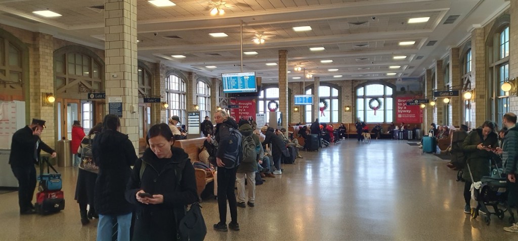 We pikken een verkleumde Frans weer op en Bob zet ons af bij een bushalte. We willen met openbaar vervoer terug naar Washington maar we besluiten (i.v.m. de tijd) het eerst stuk met 2 busritten te skippen en een Uber te nemen naar het station. Daar nemen we de boemel naar Washington Union Station (45 minuten), vervolgens 2 metroritten waarvan de laatste zo’n 50 minuten, en tenslotte een wandeling van 25 minuten terug naar ons hotel.